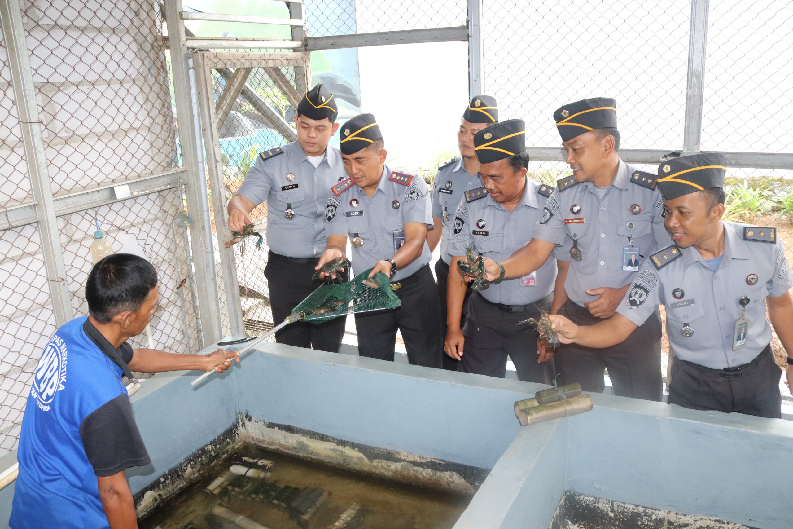Kepala Lembaga Pemasyarakatan (Lapas) Narkotika Kelas IIA Karang Intan, Edi Mulyono, meninjau langsung kegiatan budidaya lobster air tawar yang dilaksanakan di area pembinaan kemandirian warga binaan pada Sarana Asimilasi dan Edukasi (SAE) 1, Selasa (15/7). Peninjauan ini merupakan bentuk komitmen Lapas dalam mendukung ketahanan pangan nasional dan pemberdayaan narapidana melalui kegiatan produktif berbasis keterampilan ekonomi.
