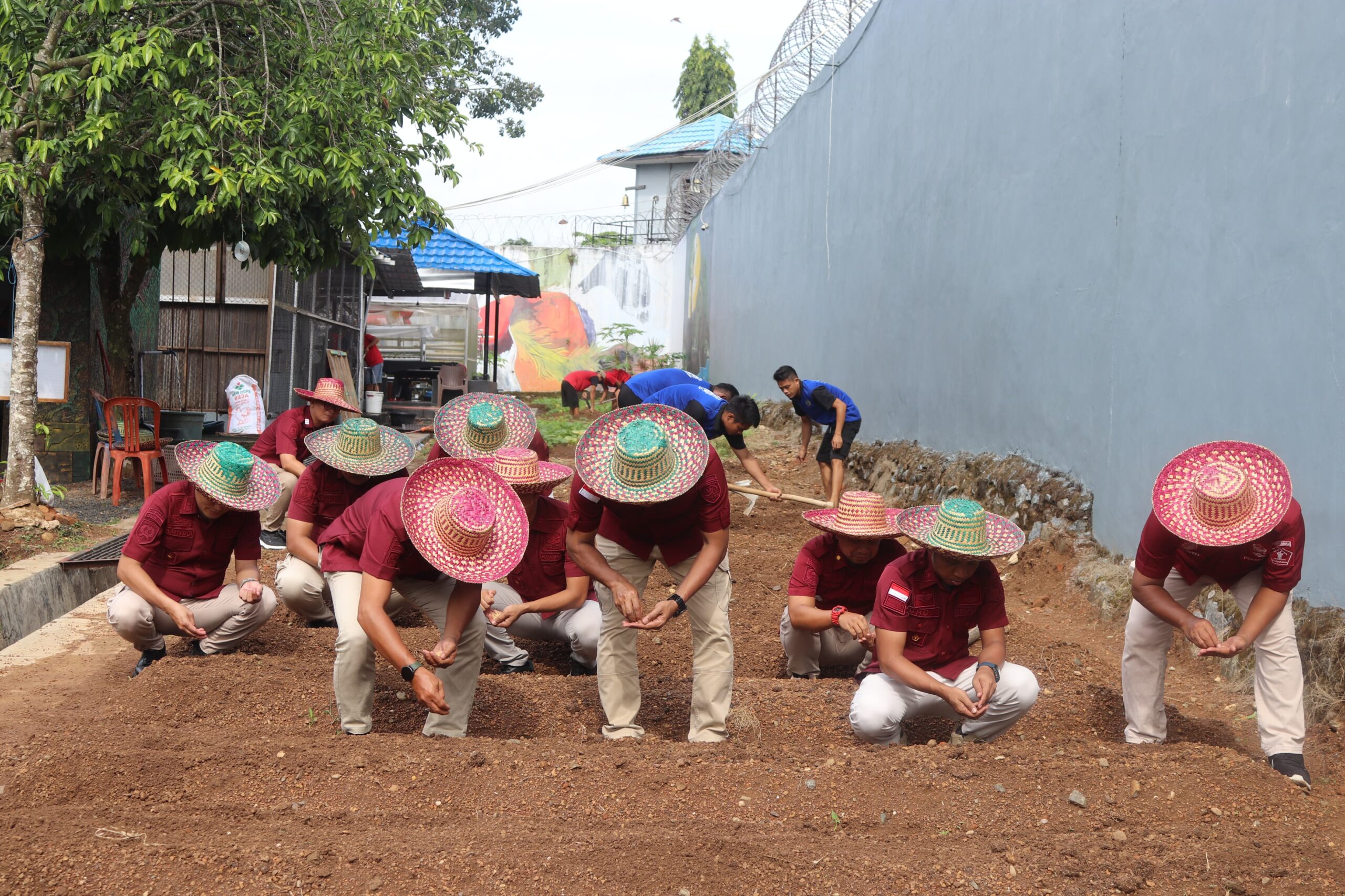 Karang Intan, INFO_PAS – Kepala Lembaga Pemasyarakatan (Lapas) Narkotika Kelas IIA Karang Intan, Edi Mulyono, bersama pejabat struktural turut menanam kedelai secara langsung di lahan perluasan Sarana Asimilasi dan Edukasi (SAE) 1, Kamis (17/7). Langkah ini menjadi bagian dari upaya mendorong peningkatan produksi tempe hasil pembinaan kemandirian warga binaan.
