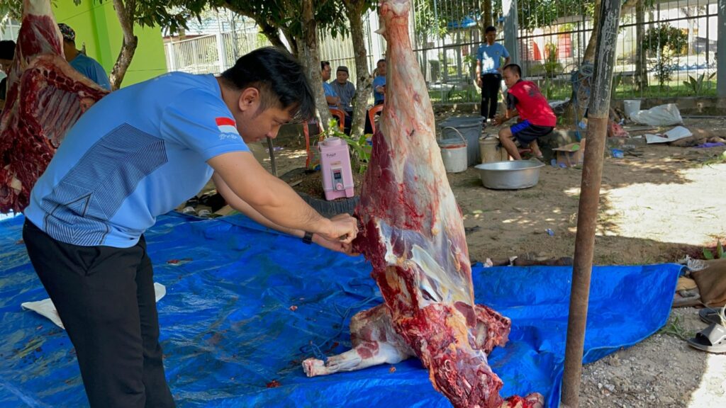 Menariknya, pemotongan hewan kurban ini tidak hanya menjadi ajang ibadah, tetapi juga sarana pembinaan, di mana warga binaan turut dilibatkan secara aktif sebagai panitia. Penyembelihan dilakukan oleh Guru H. Badaruddin—yang sebelumnya menjadi imam dan khatib salat Idul Adha—dengan dibantu oleh WBP yang sudah dibekali pelatihan teknis dan pembinaan keagamaan sebelumnya.