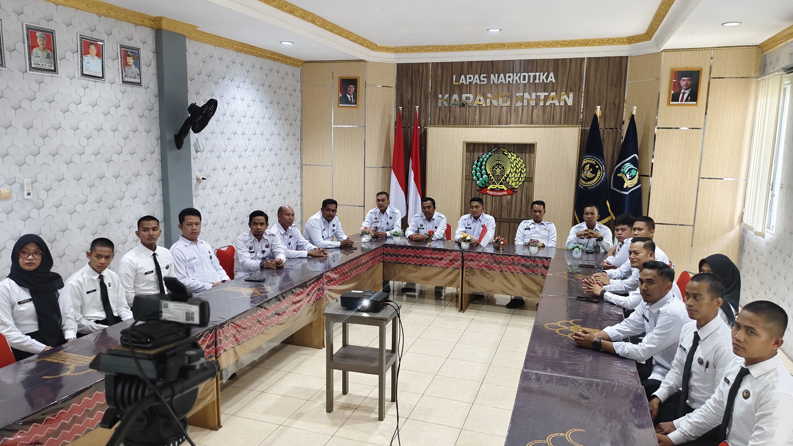 Jajaran Lembaga Pemasyarakatan (Lapas) Narkotika Kelas IIA Karang Intan mengikuti pengarahan Direktur Jenderal Pemasyarakatan, Mashudi, secara virtual pada Senin (14/7) dari Aula Lapas. Kegiatan ini bertujuan memperkuat pelaksanaan tugas pemasyarakatan serta menyelaraskan arah kebijakan nasional dengan satuan kerja di daerah.