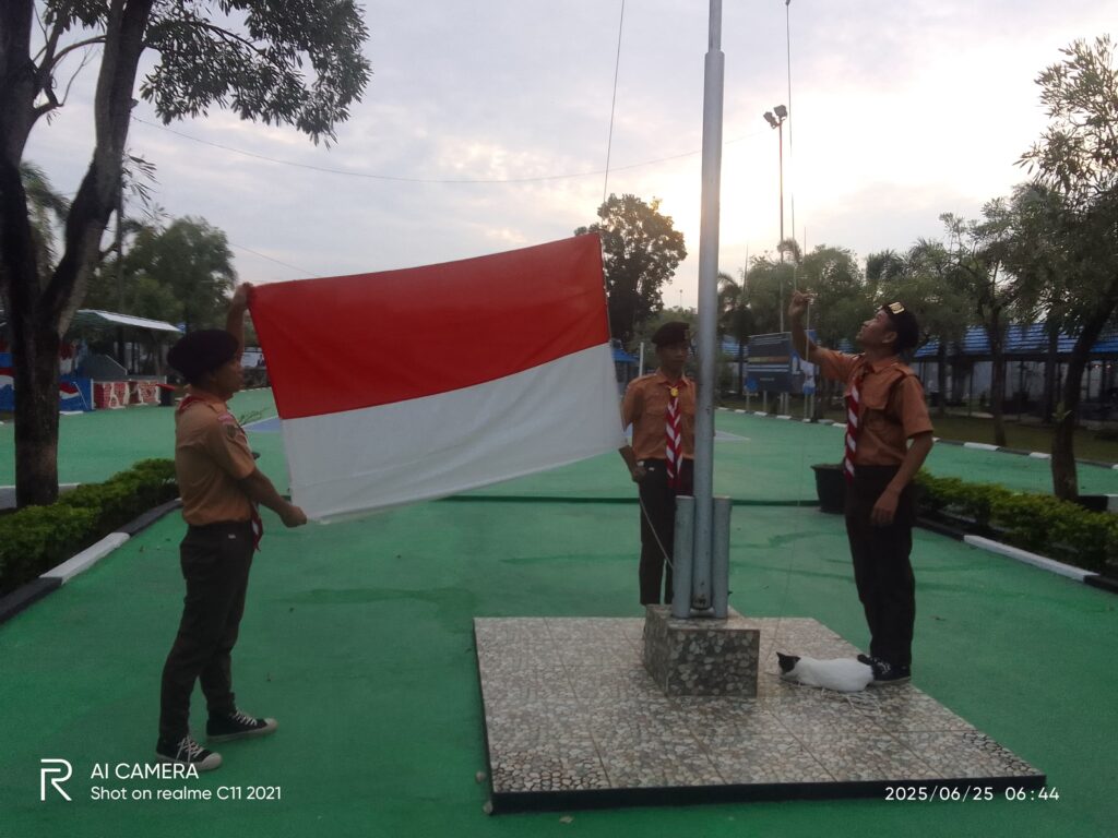 Karang Intan, INFO_PAS – Suasana sore di Lembaga Pemasyarakatan (Lapas) Narkotika Kelas IIA Karang Intan kembali diwarnai kegiatan pembinaan karakter kebangsaan. Jumat (27/6), Warga Binaan Pemasyarakatan (WBP) yang tergabung dalam satuan pramuka melaksanakan tugas penurunan bendera merah putih di halaman utama Lapas.